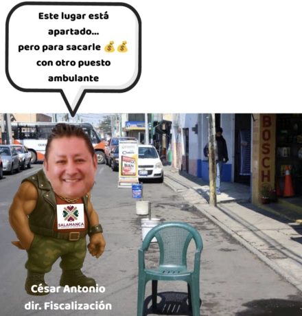 OTRA ÁREA OLVIDADA… Y me refiero a Fiscalización y Control, la cual se ha vuelto cómplice de que en la ciudad se cierre el comercio formal y crezca el comercio informal, y es que esta dependencia que está a cargo de precisamente impedir que el comercio informal abarque banquetas y zonas exclusivas para peatones o personas con discapacidad. Y es que su el jefe César Antonio Gutiérrez o una de dos, o no sabe cuál es su chamba o de plano trae por ahí acomodo$$$$ para permitir todos estos comercios. Lo pior es que viene la época navideña y con ello el incremento de los puestos de ocasión, que esperamos y no sigan invadiendo banquetas y hasta las calles, ya ven que como el señor no es de aquí pos no le importa el desastre que haga.