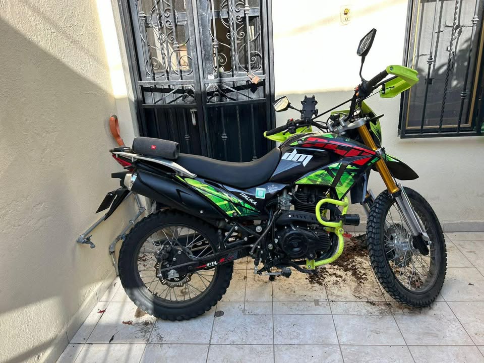 La motocicleta es una Italika dm 360 de color negro con vistas en verde y rojo. Como señas particulares: no portaba placas, la direccional del lado izquierdo se encuentra pegada con cinta y las luces del spoiler fueron amarradas con un alambre.