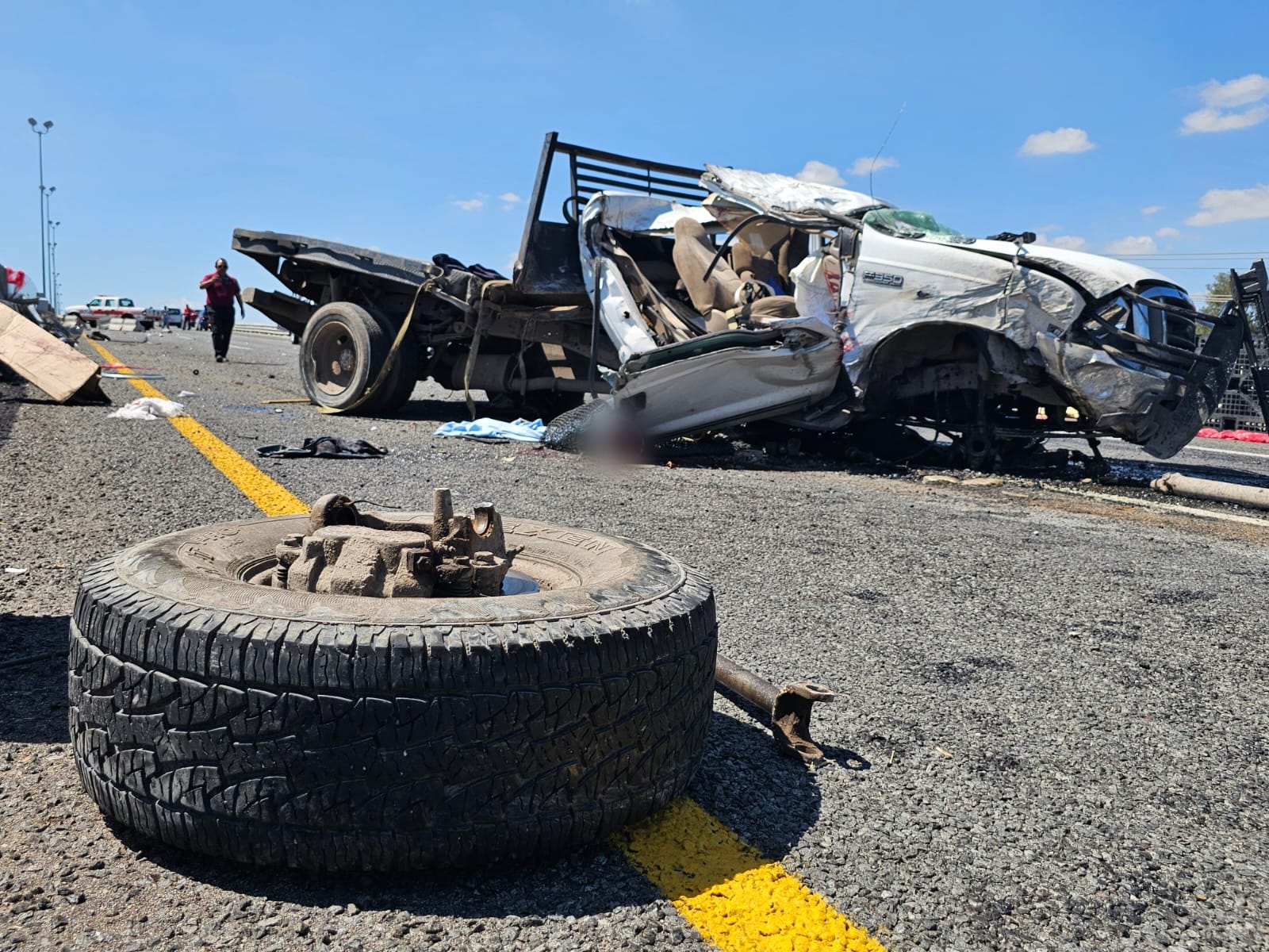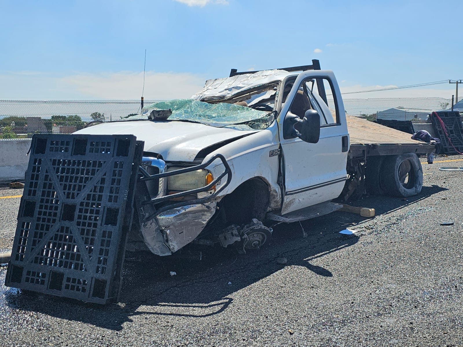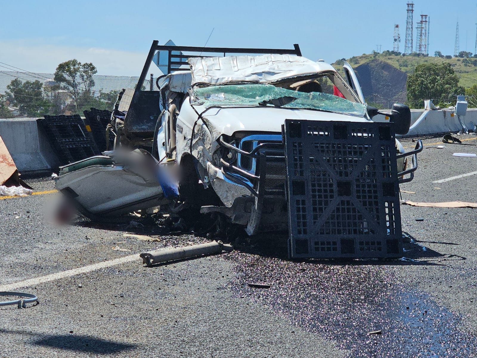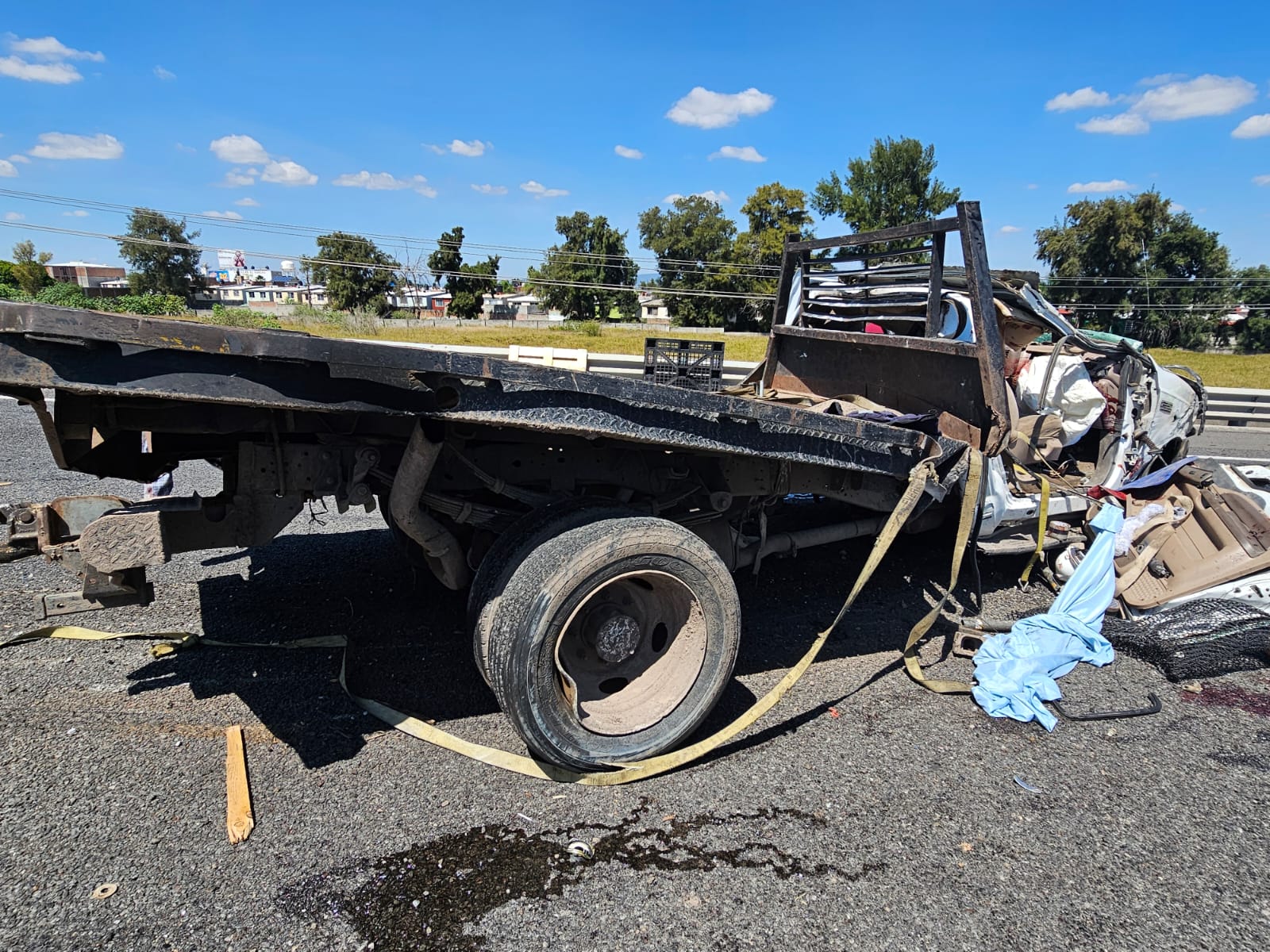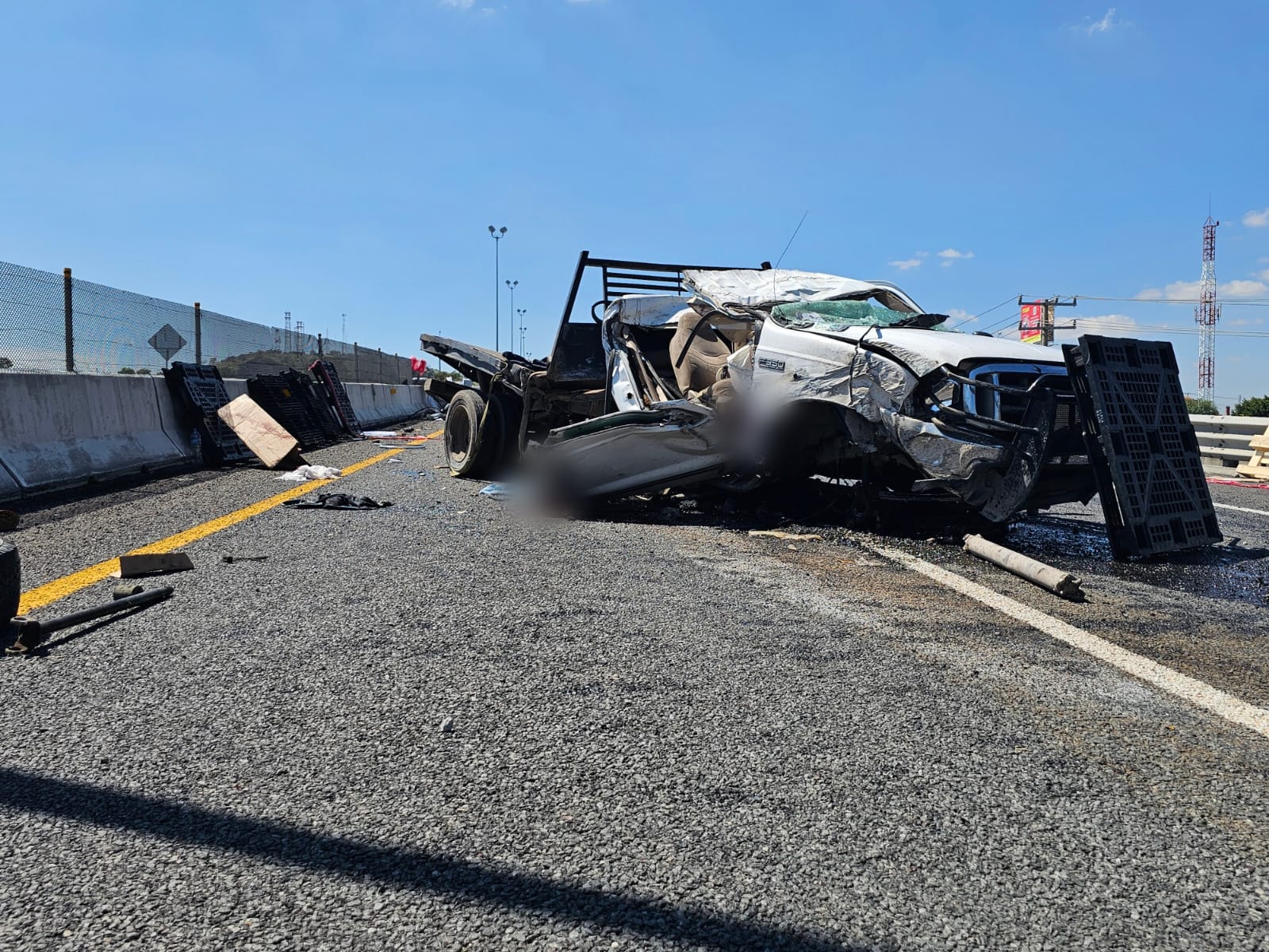 La tarde de este jueves, los sistemas de emergencia fueron alertados por un aparatoso accidente vial en el que se vio involucrado un camión de carga que impacto fuertemente con el muro de contención al grado de cambiar de carril, derrumbar una lámpara y dejar esparcidos por la cinta asfáltica trozos de metal, concreto, aceite y plástico, además de palets de madera y palets de plástico. El incidente dejó serios daños a la carrocería del vehículo y cobró la vida de una persona, mientras que dejó a otra seriamente lesionada.