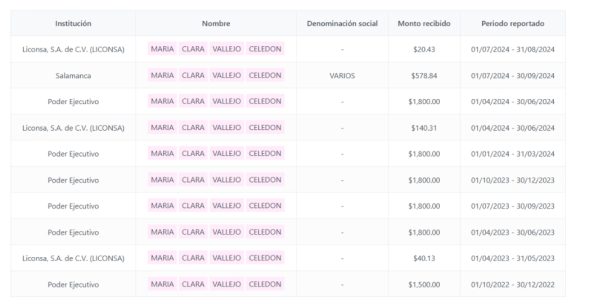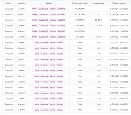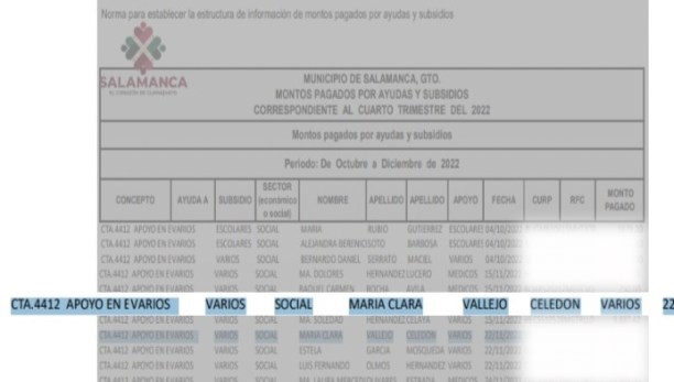 A esto se le suman las cantidades de dinero entregadas desde el subsidio “Transformando mi Salamanca” que consta de $1,500.00 semanales. Esto sin contar los apoyos en especie que aparecen en la página de transparencia: