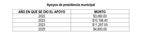 Un primer apoyo detectado se dio a mediados del año 2022 por la cantidad de 14,900 pesos, tal y como consta en la información proporcionada por transparencia municipal.