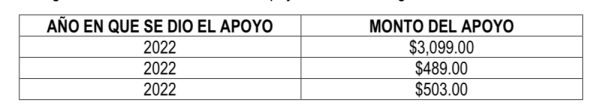 Posteriormente se entregó otro apoyo de 14 mil pesos sin que se especifique la finalidad del apoyo, el cual recibió a finales del año 2022.