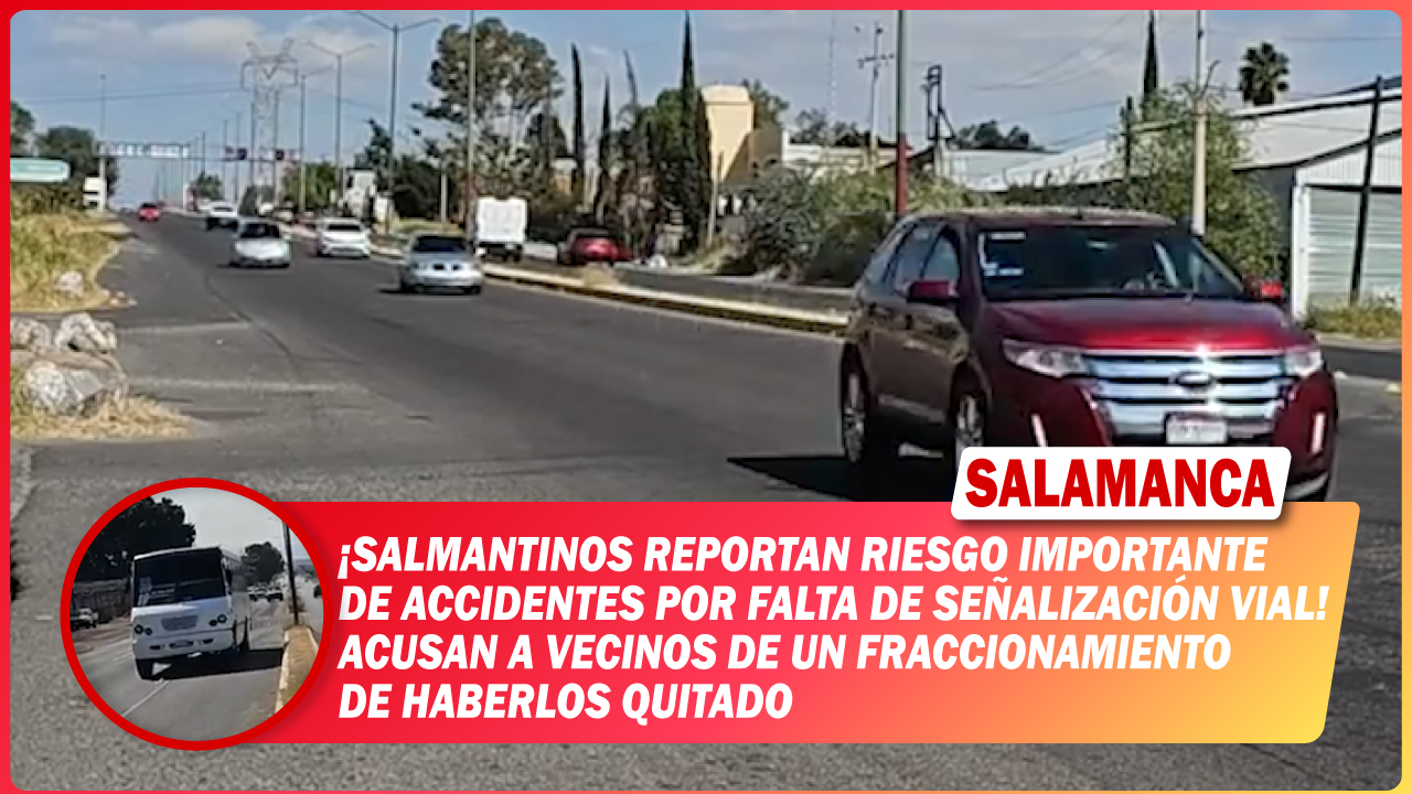 Salmantinos reportan riesgo importante de accidentes por falta de sañalización vial. Acusan a vecinos de un fraccionamiento de haberlos quitado