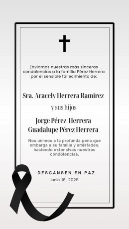 Expresamos nuestras más sinceras condolencias a sus seres queridos, y nos sumamos en oración para que encuentren fortaleza en medio de esta adversidad.